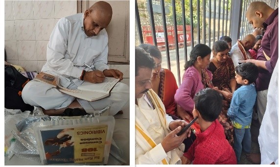 Dharmanna Gudem, Bhadradri, Kothagudem, TS, 10 Jan 2026: Practitioner 11585 served 22 patients in this tribal village and on the same day, he treated 8 patients in tribal village of Korrajula Gutta. Pudimadaka, Anakapalli, AP, 1 Feb 2026: At a traditional buttermilk distribution kiosk during the auspicious Magha Purnima seaside gathering, Practitioners 11634 & 11648, supported by the local Bhajan Mandli, treated 222 patients for various ailments including joint pains, headache, high BP, and diabetes. One patient who experienced complete relief from a severe headache along with the local Sarpanch approached the vibrionics team to learn more about this system.