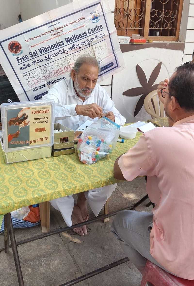 While serving at the vibrionics camp at Puttaparthi Railway Station on 23 Nov 2025, Practitioner 11587 received valuable support and many referrals from a devotee from Alkapuri Samithi he had just met. On their return to Hyderabad, the Convener of the Samithi, readily accepted their proposal to start a Sai Vibrionics camp at the Samithi premises where they already host regular homoeopathy and allopathy camps on Thursdays and Sundays.